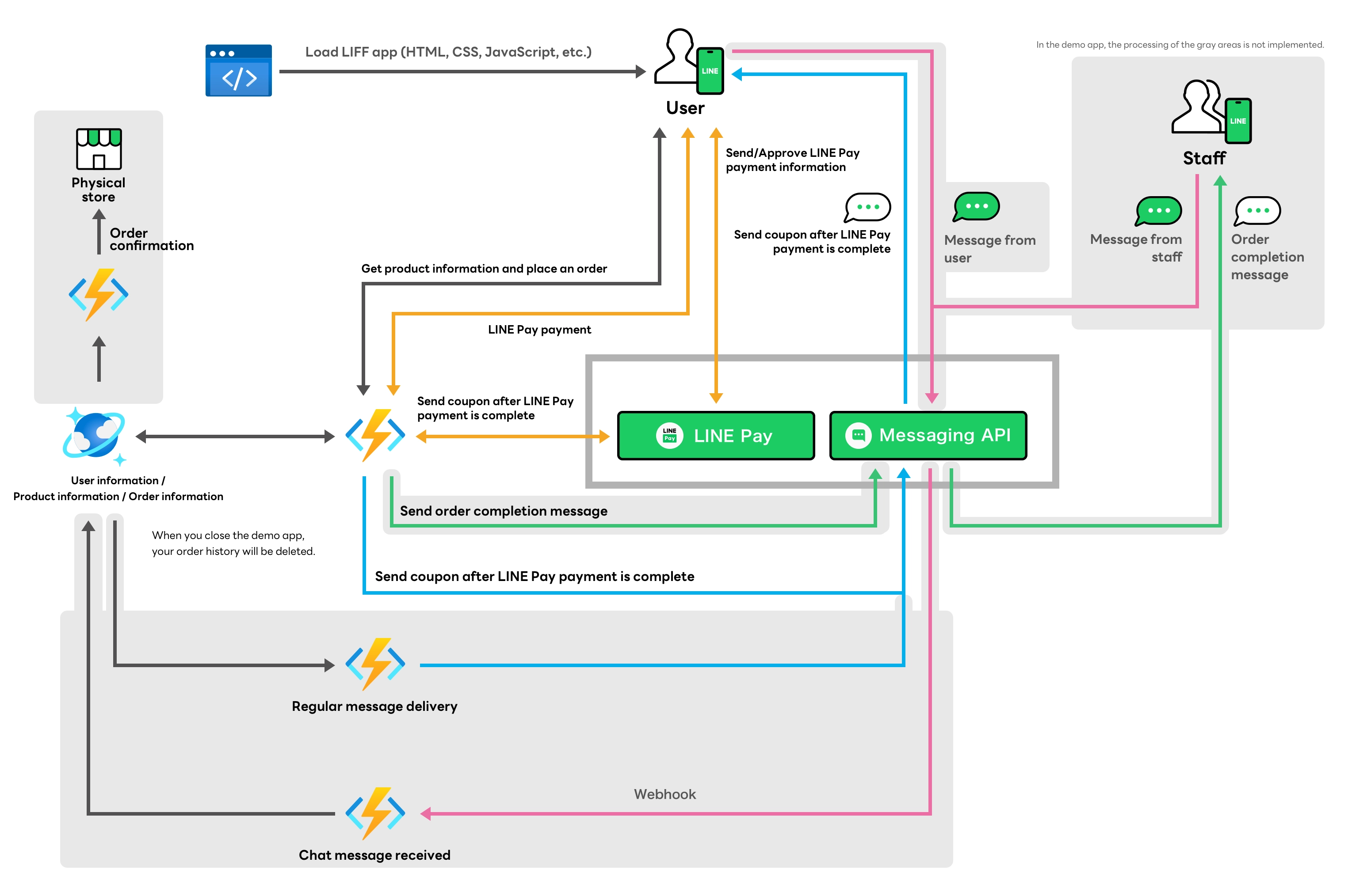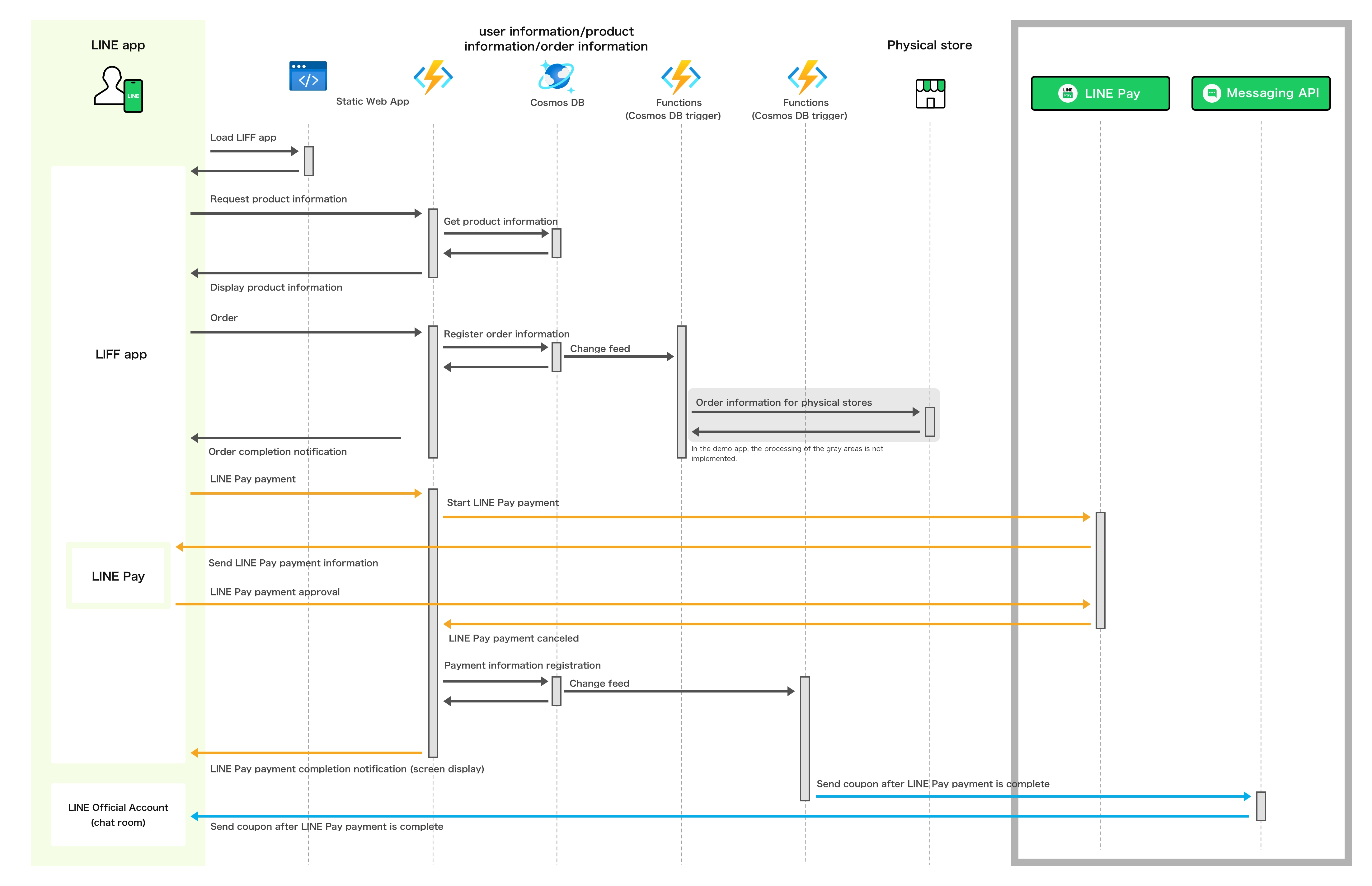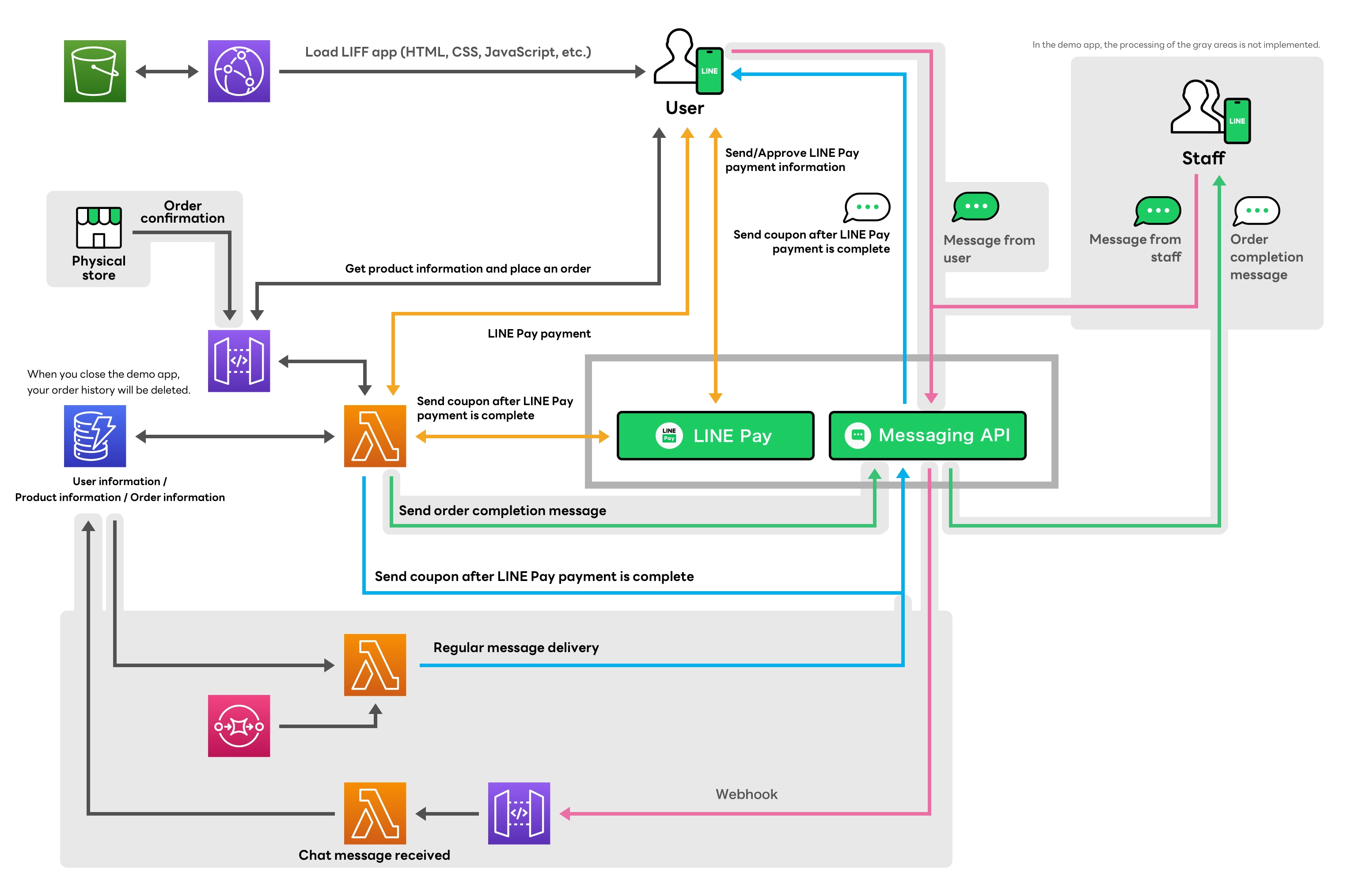 Please note that the demo app will access your LINE account profile information, including your display name and user ID. Your user ID will be stored on the server, but this data will be deleted daily. Payment will be made from the LINE Pay balance prepared by this demo app. No actual payment method is selected or payment is made.