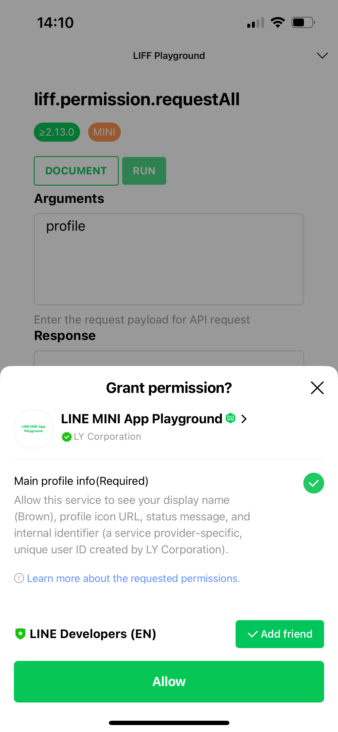Some information registered on the LINE Developers Console will be displayed to LINE MINI App users.