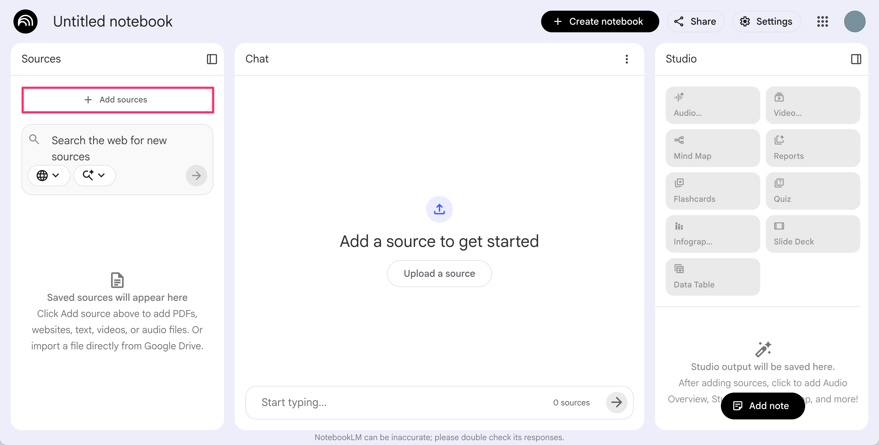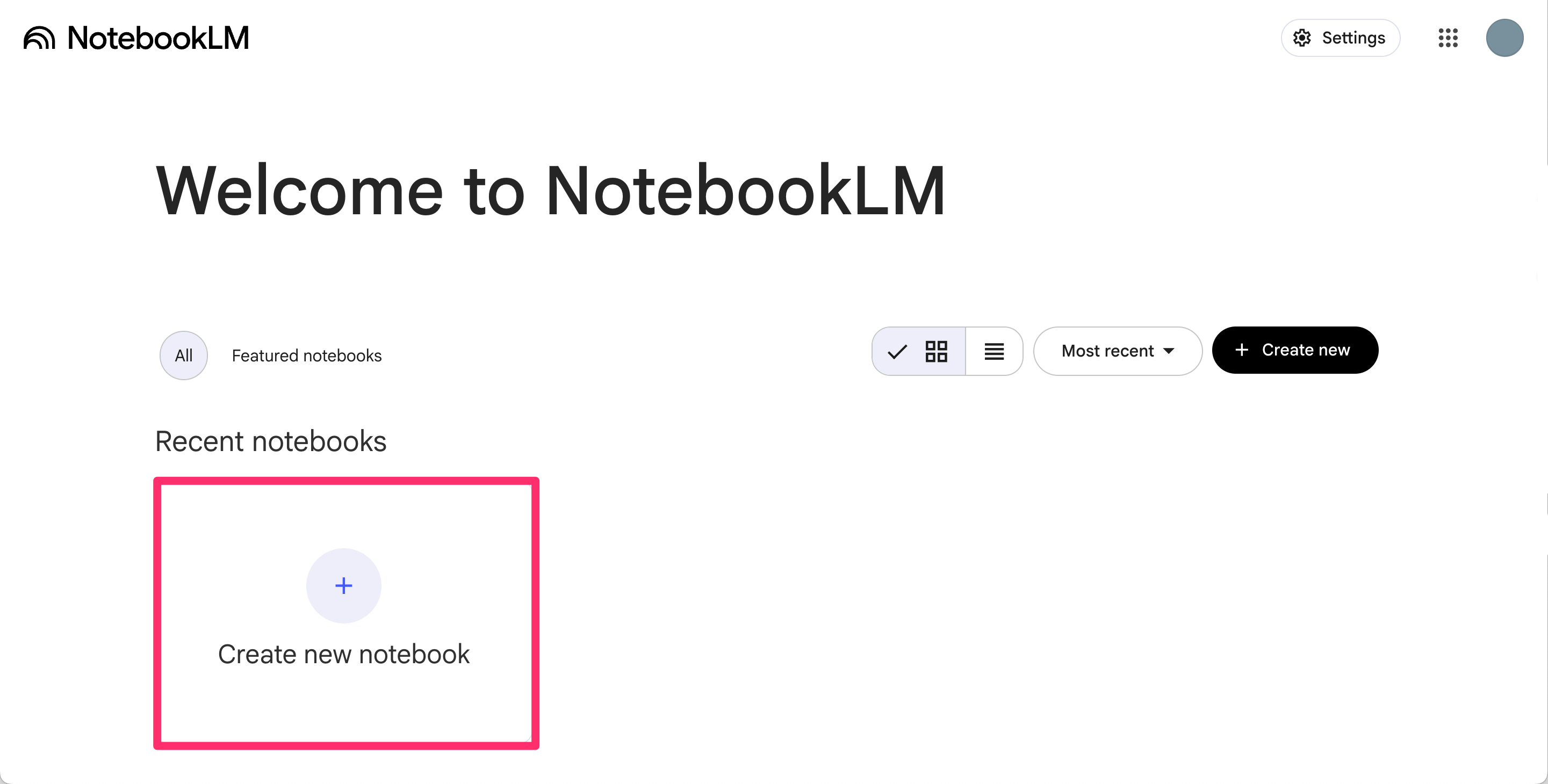 Go to NotebookLM and click Create new notebook.