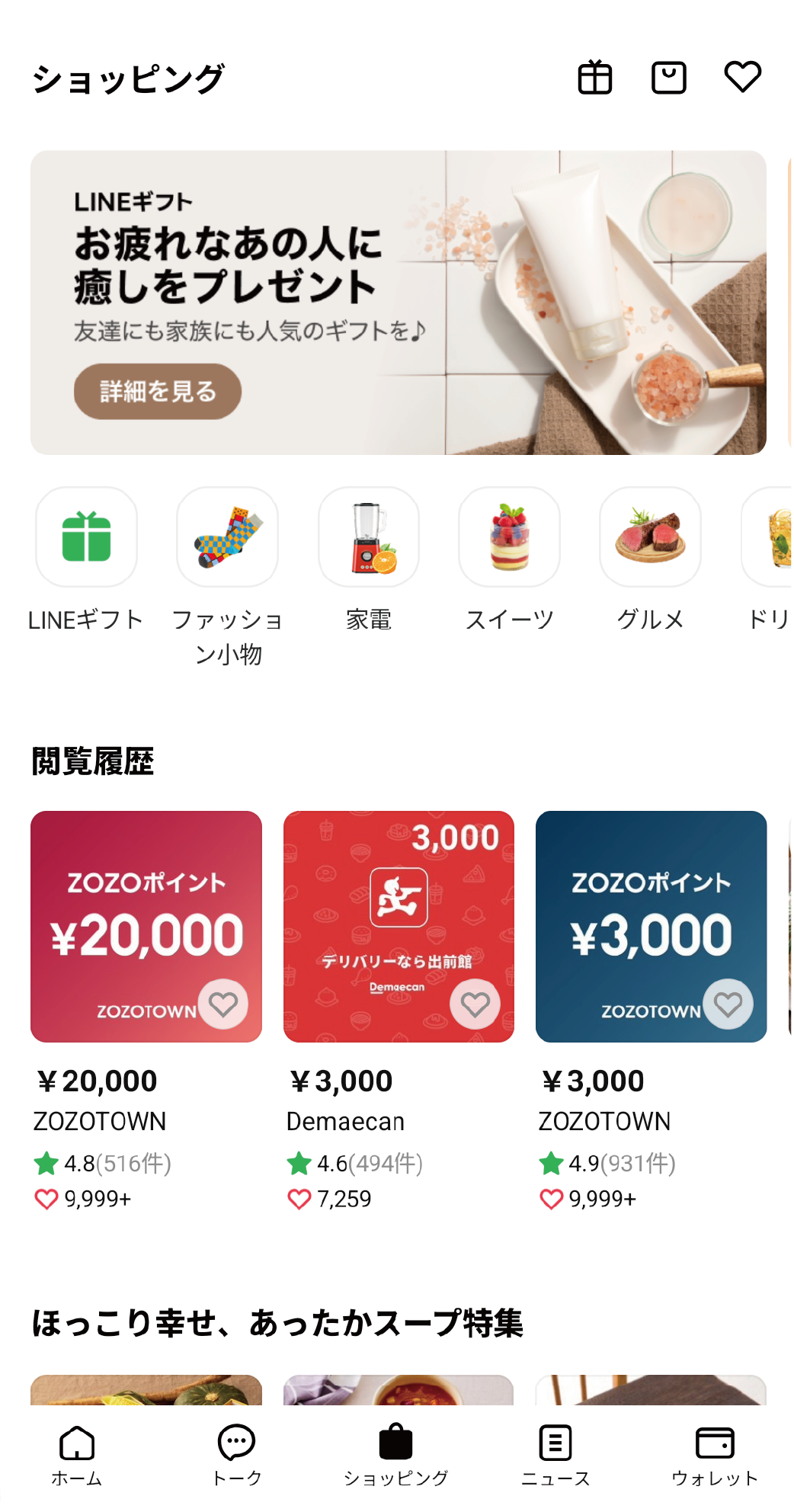 https://line.me/R/nv/commerce | ショッピングタブを開きます。 |