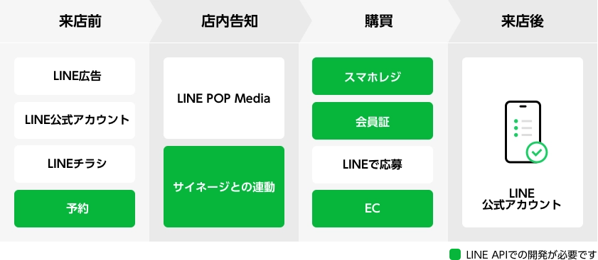 - LINE広告、LINE公式アカウント、LINEチラシ、独自の予約システムを使った来店前のお得情報の提供