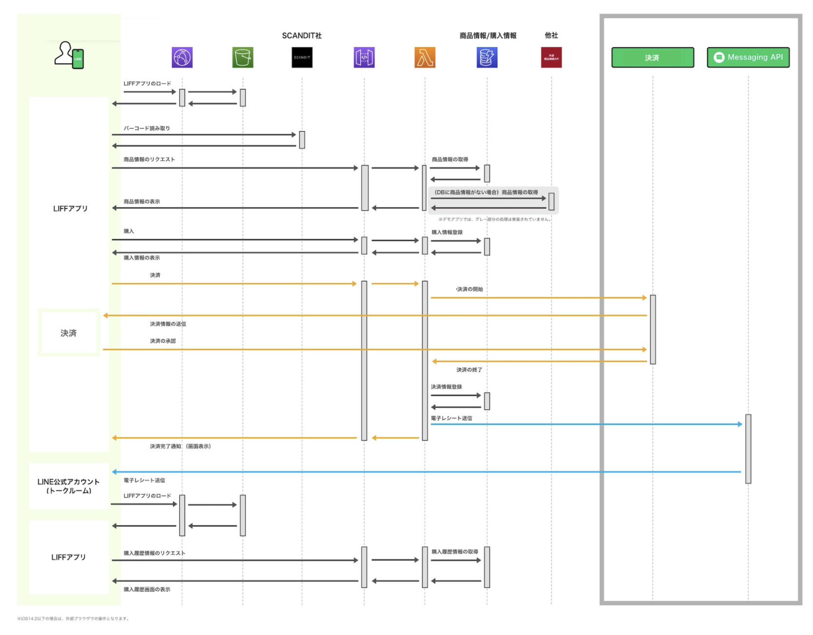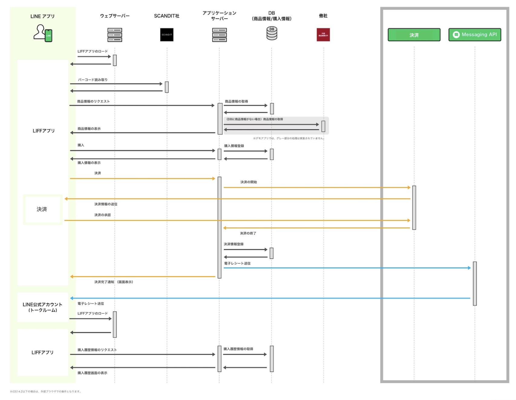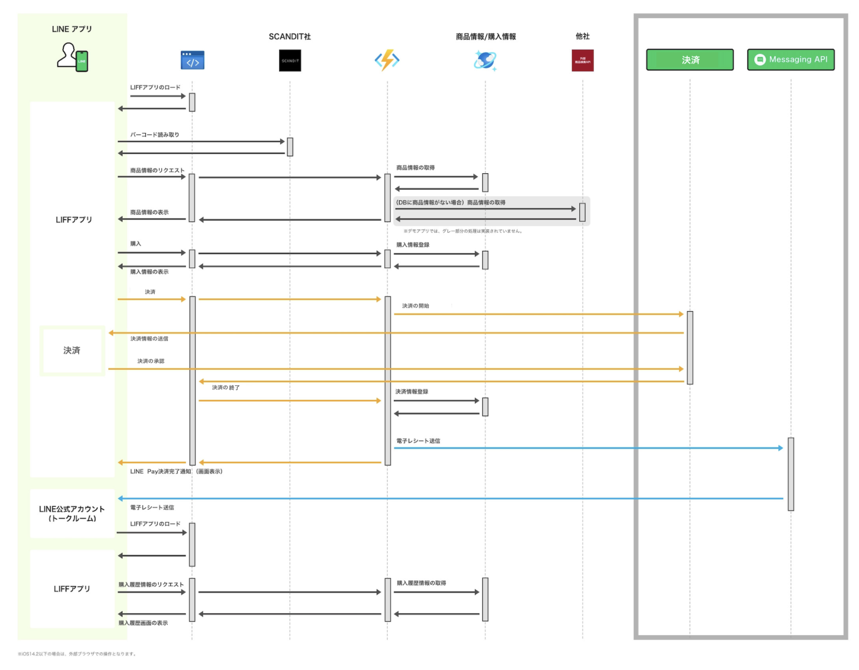 デモアプリケーションで、どのようにLINE APIを利用しているかを示した図です。