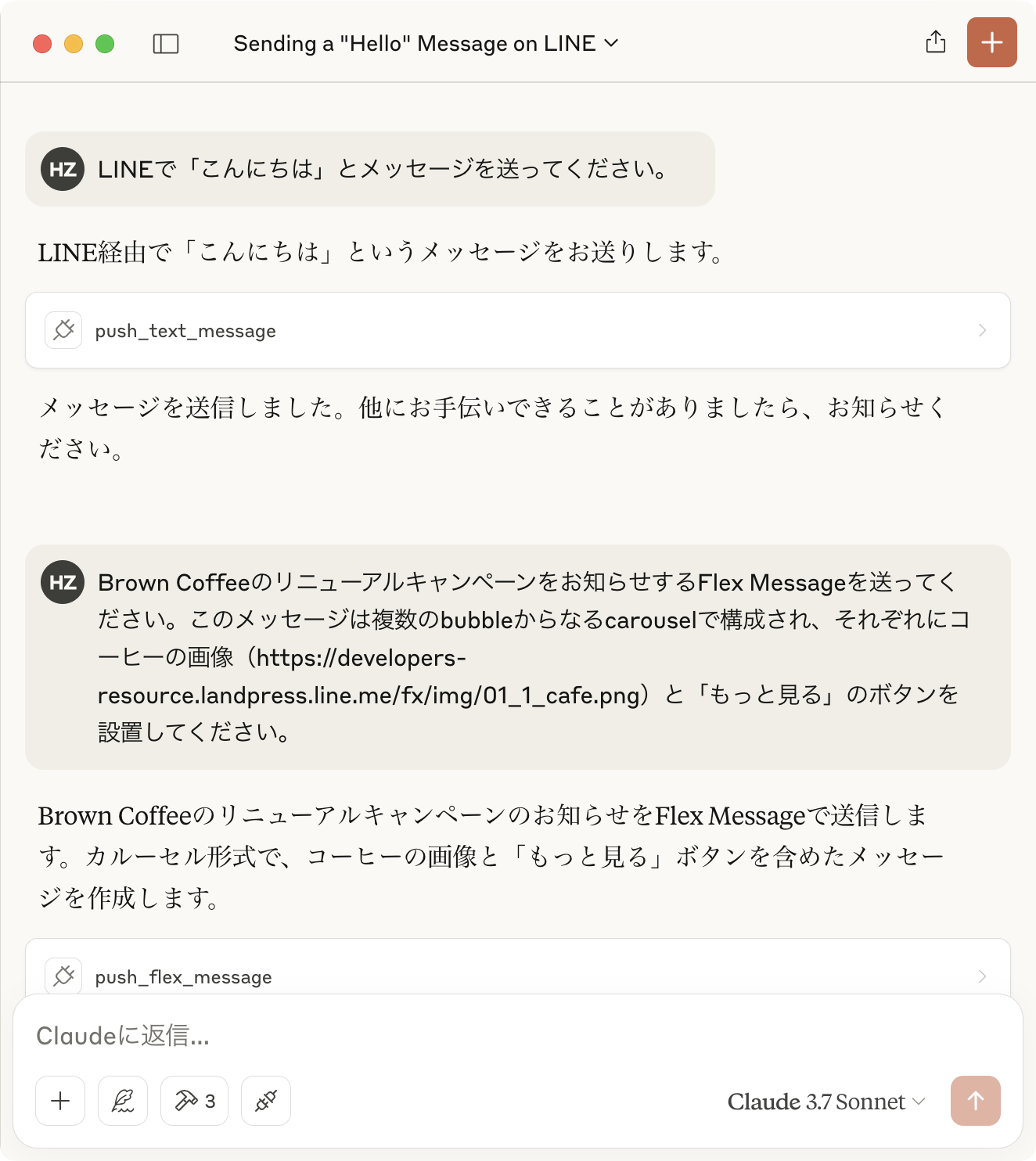 たとえば、次の流れでLIFFアプリを操作するとします。