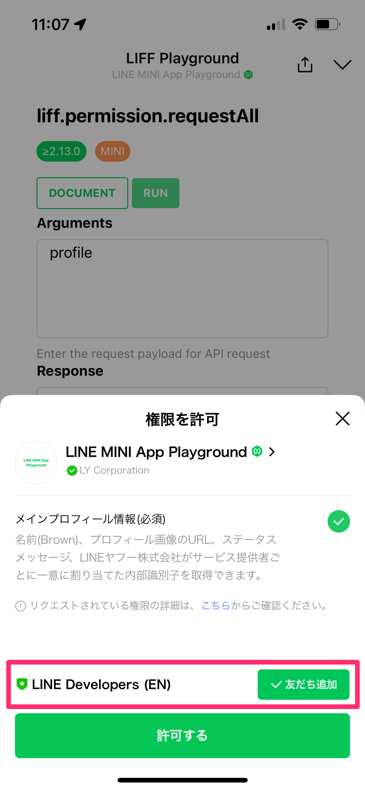liff.permission.query()メソッドとliff.permission.requestAll()メソッドを使うと、アクセス許可要求画面を表示できます。